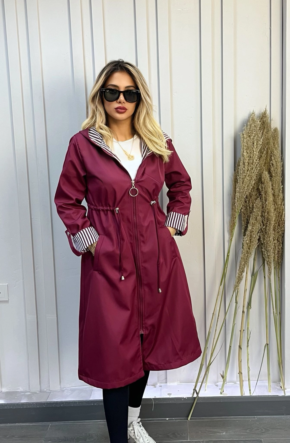 ترنشكوت نسائي كلاسيكي مزدوج الصدر بتصميم أنيق وإغلاق أمامي بالأزرار، مثالي لاعتماده في فصلي الربيع والخريف لإطلالة أنيقة.