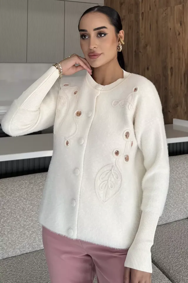 فيست تريكو بياقة دائرية مع إغلاق أمامي وأزرار وجيبين لإطلالة يومية شتوية مريحة وشيك.