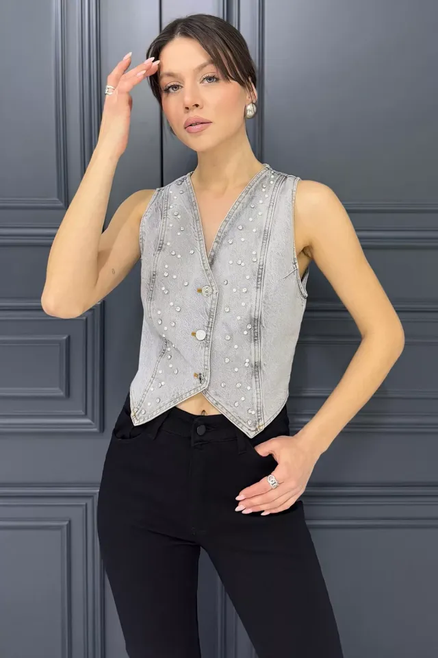 فيست تريكو بياقة دائرية مع جيبين وأزرار للنساء