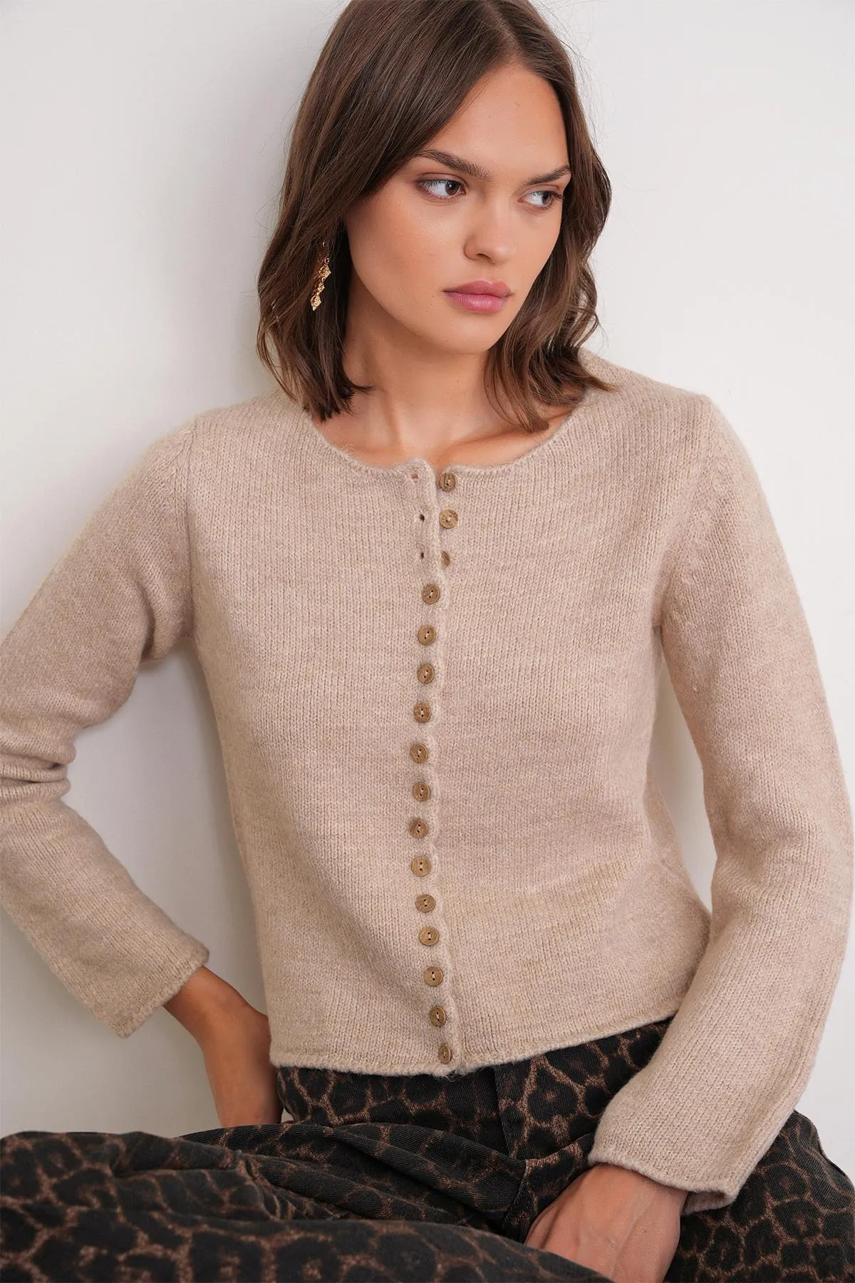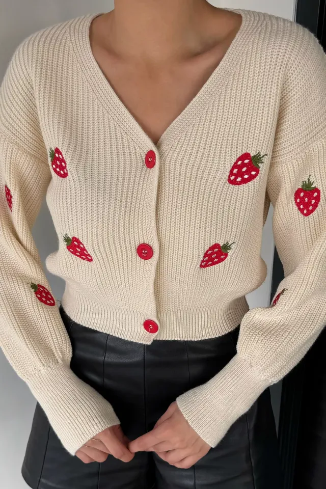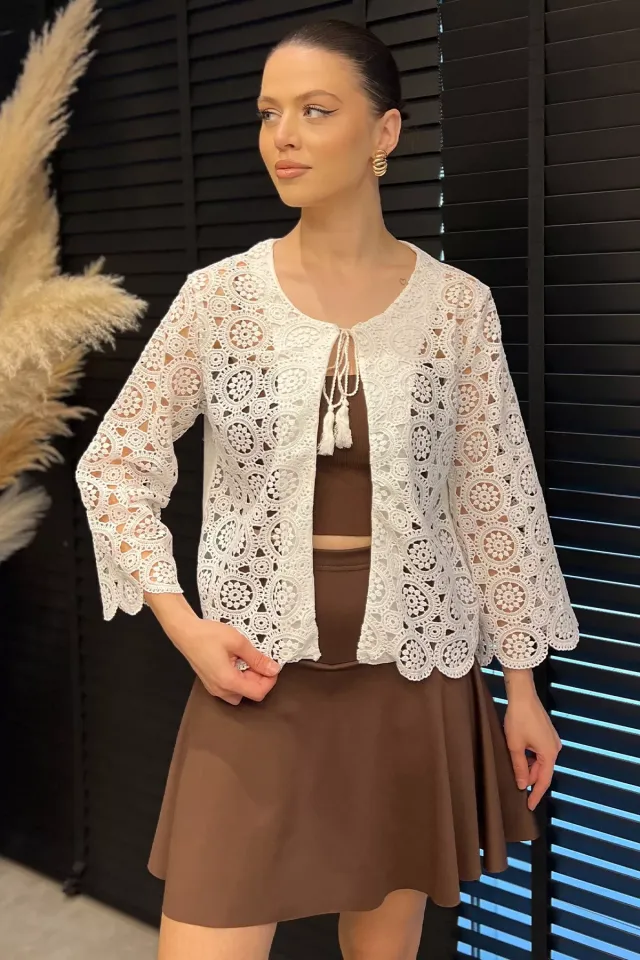 كارديجان نسائي محبوك بأكمام قصيرة وتفاصيل فيونكة، مصنوع من قماش ناعم يمنح دفء وراحة ولمسة أنثوية أنيقة تناسب الإطلالات الكاجوال أو الأنيقة.