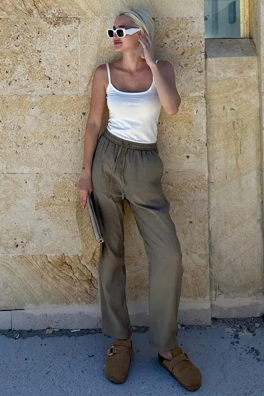 بنطلون بقصة جزرية بخصر عالي مع حزام للنساء