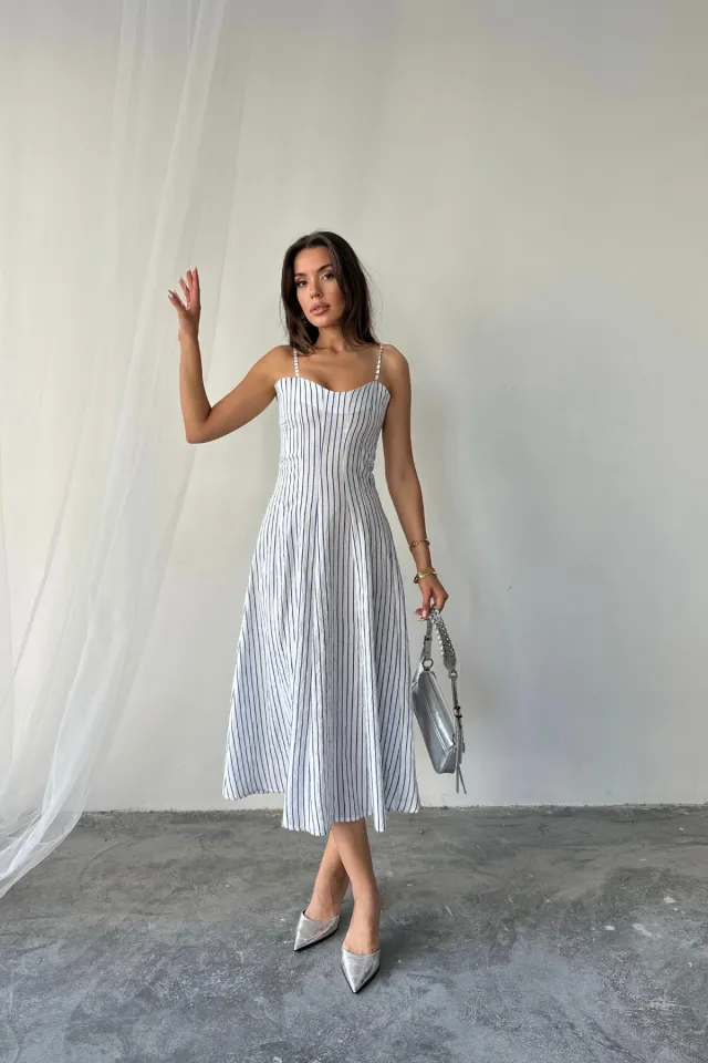فستان ميدي أنيق بياقة قلب مع قصة ضيقة بستايل ضيق وشق جانبي مثالي للارتداء الموسمي
