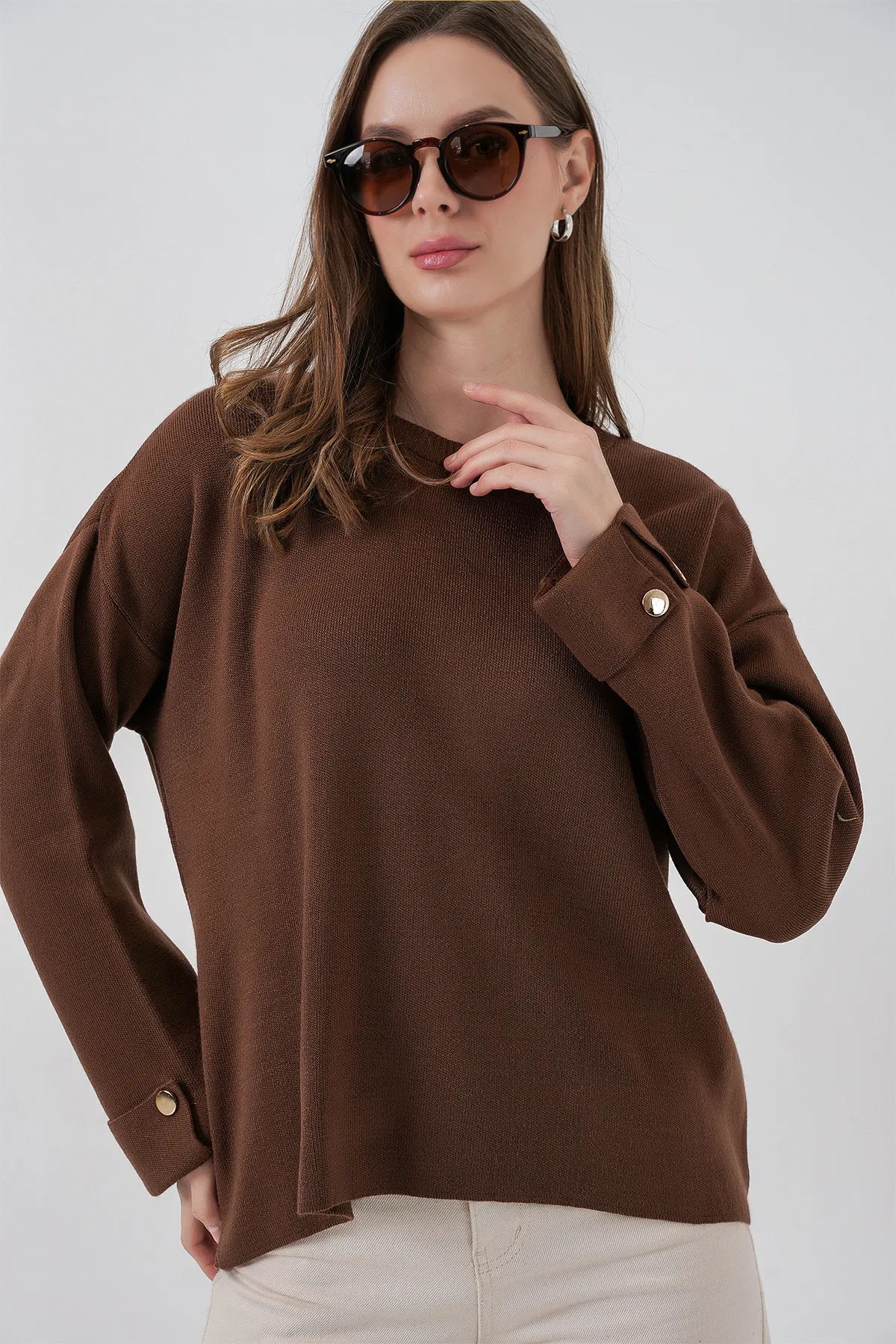 كنزة تريكو اوفرسايز بسحاب مع اكتاف دروب للنساء - Beyond Store