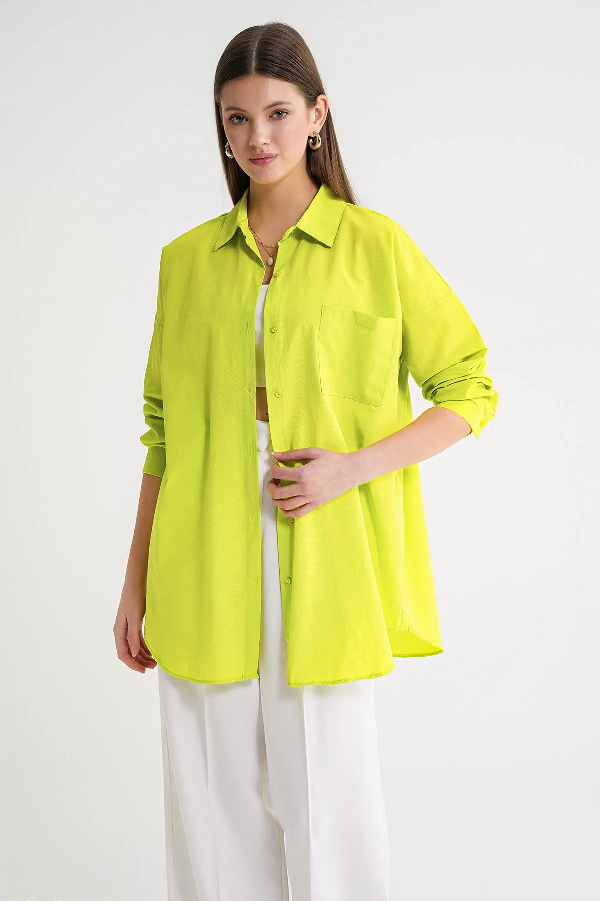 قميص موسلين واسع بجيب واحد يمنحك إحساسًا مريحًا وقصّة عصرية فضفاضة، مثالي لإطلالة يومية أنيقة وسهلة التنسيق.