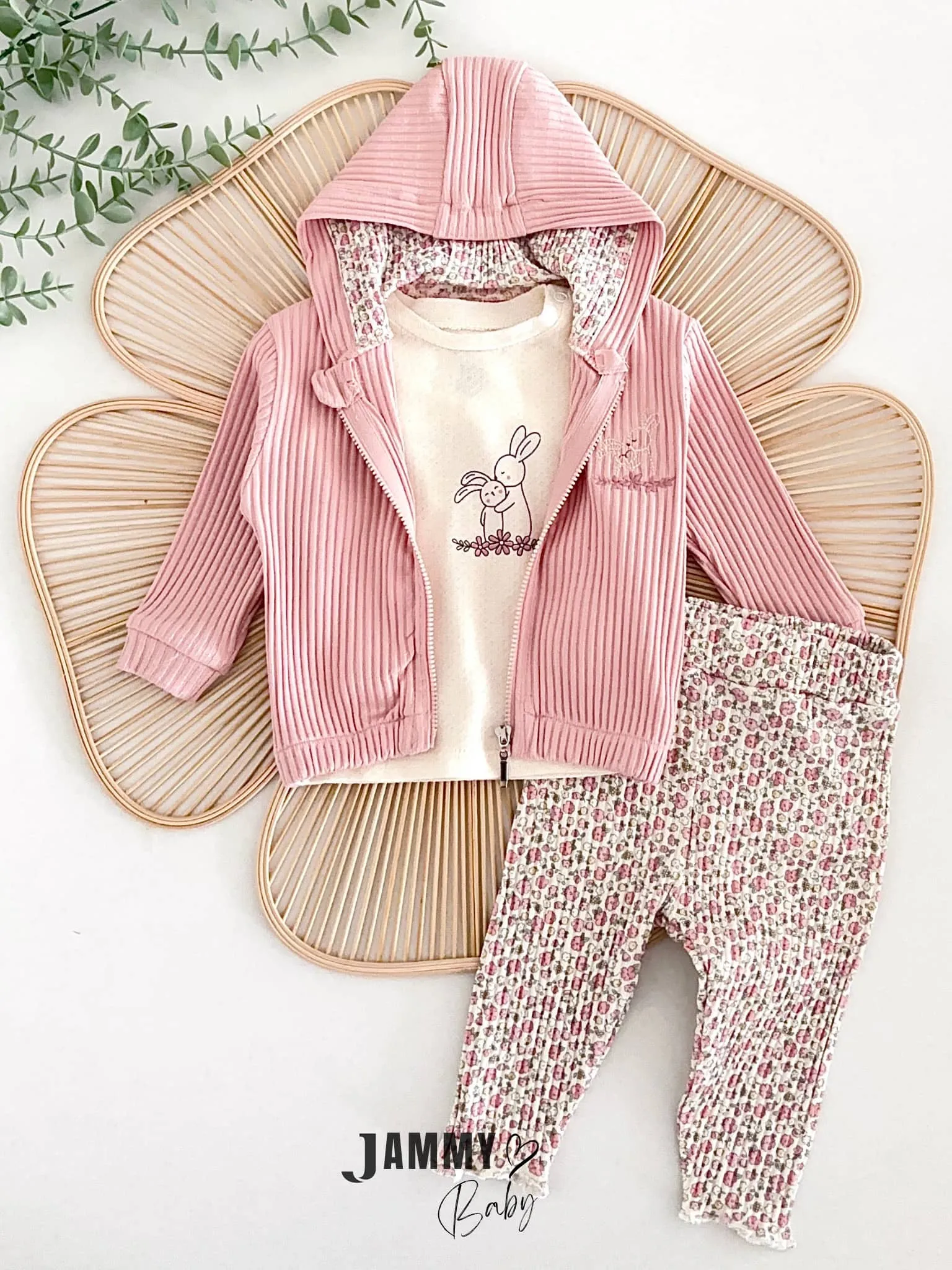 طقم بناتي للرضع 8 قطع بنقشة زهور مع قبعة وقفازات وبنطلون مغطى القدمين