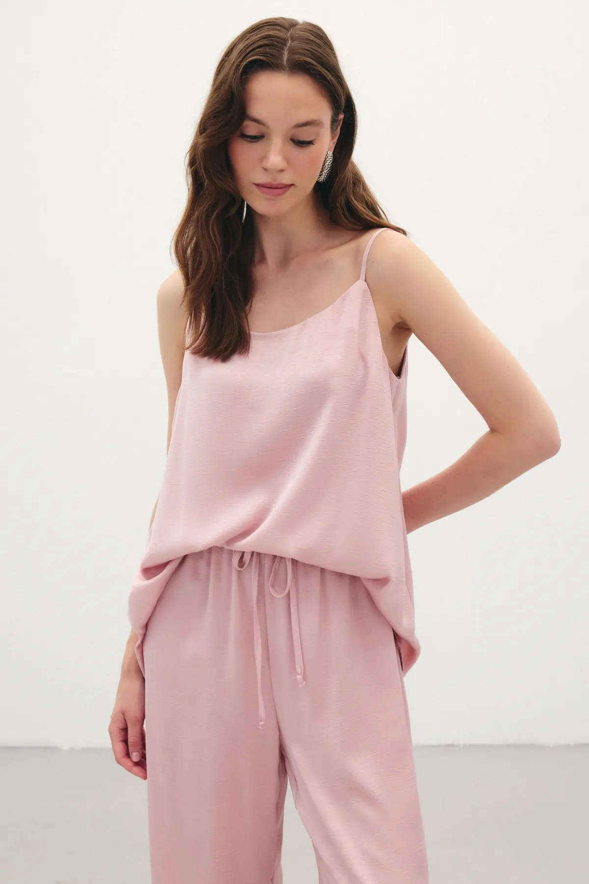 بلوزة نسائية بدون أكمام من قماش فيسكوز مع تفاصيل دانتيل وياقة دائرية
