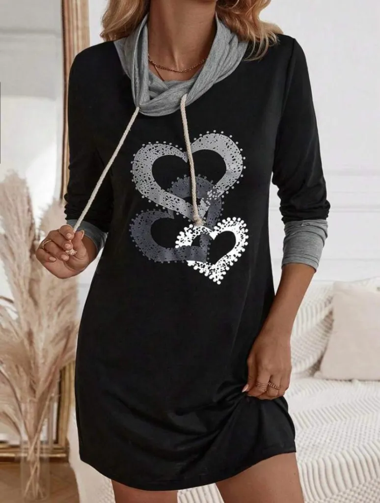 فستان ميدي كلوش ملون بياقة لف مزدوجة وأكمام كاب