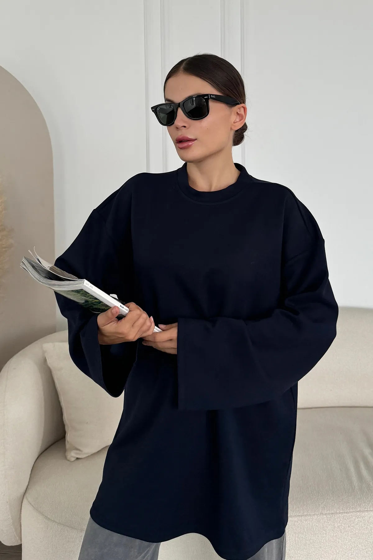 سويت شيرت نسائي بأكمام طويلة وياقة دائرية من قماش شاردون ناعم بثلاث خيوط يمنحك الدفء والراحة وإطلالة بسيطة وعصرية تناسب الاستخدام اليومي.