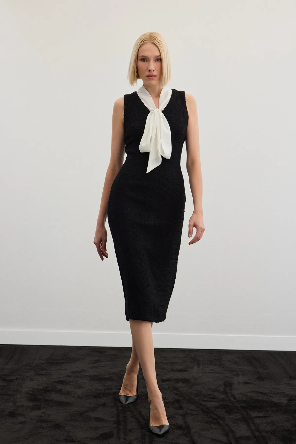 فستان ميدي طيات فيسكوز خفيف بحزام أمامي مثالي لأيام الصيف