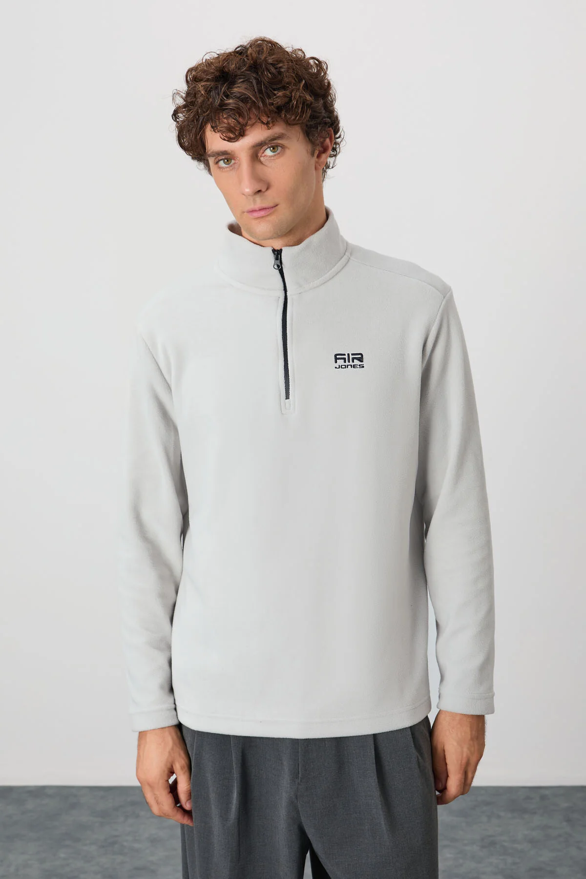 سويت شيرت رجالي بياقة قائمة وسحاب نصفي وأساور مضلعة. مريح ودافئ وأنيق للارتداء اليومي وغير الرسمي.