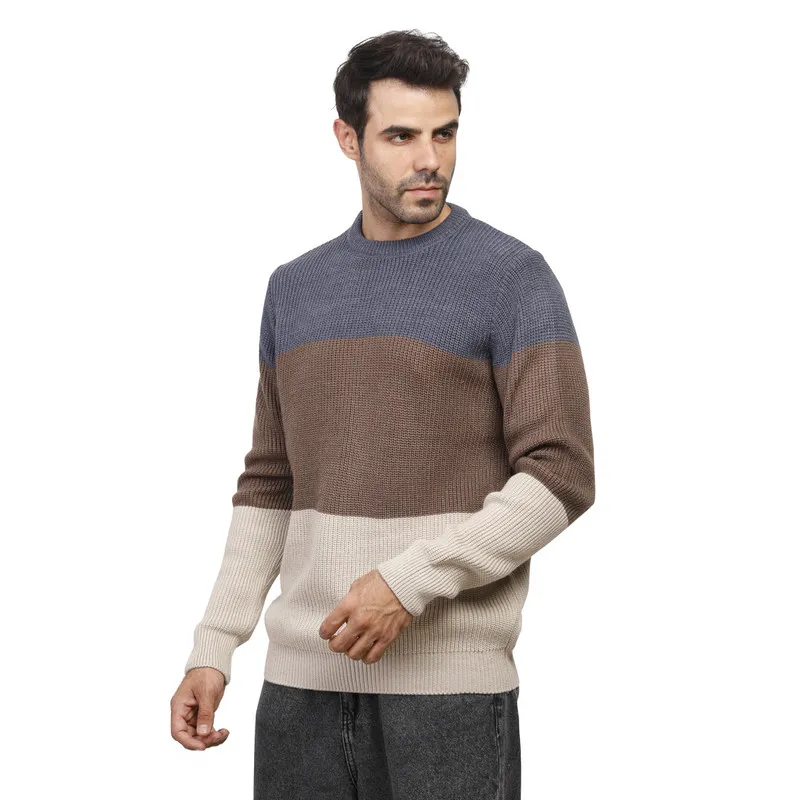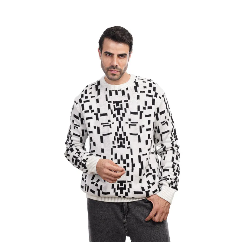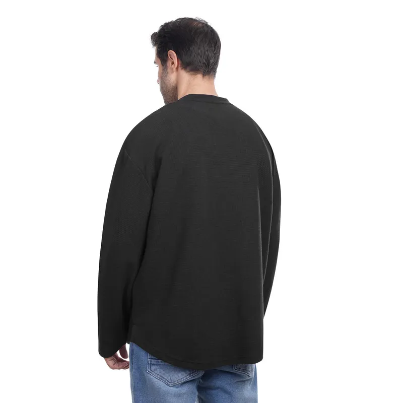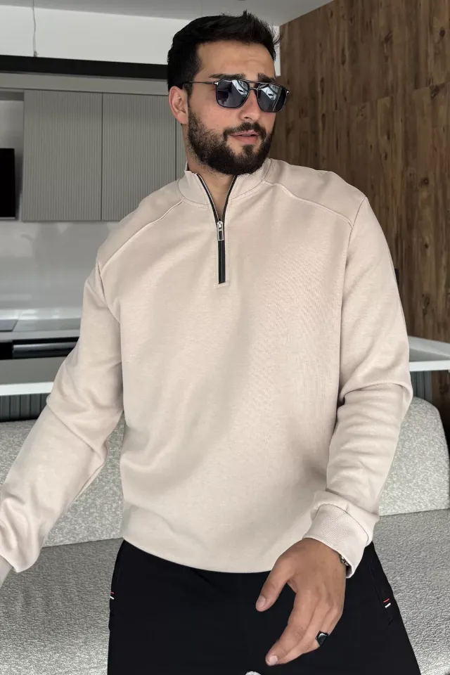 سويت شيرت رجالي بياقة قائمة وسحاب نصفي وتفاصيل مضلعة. مريح وأنيق، مثالي للارتداء اليومي وغير الرسمي.