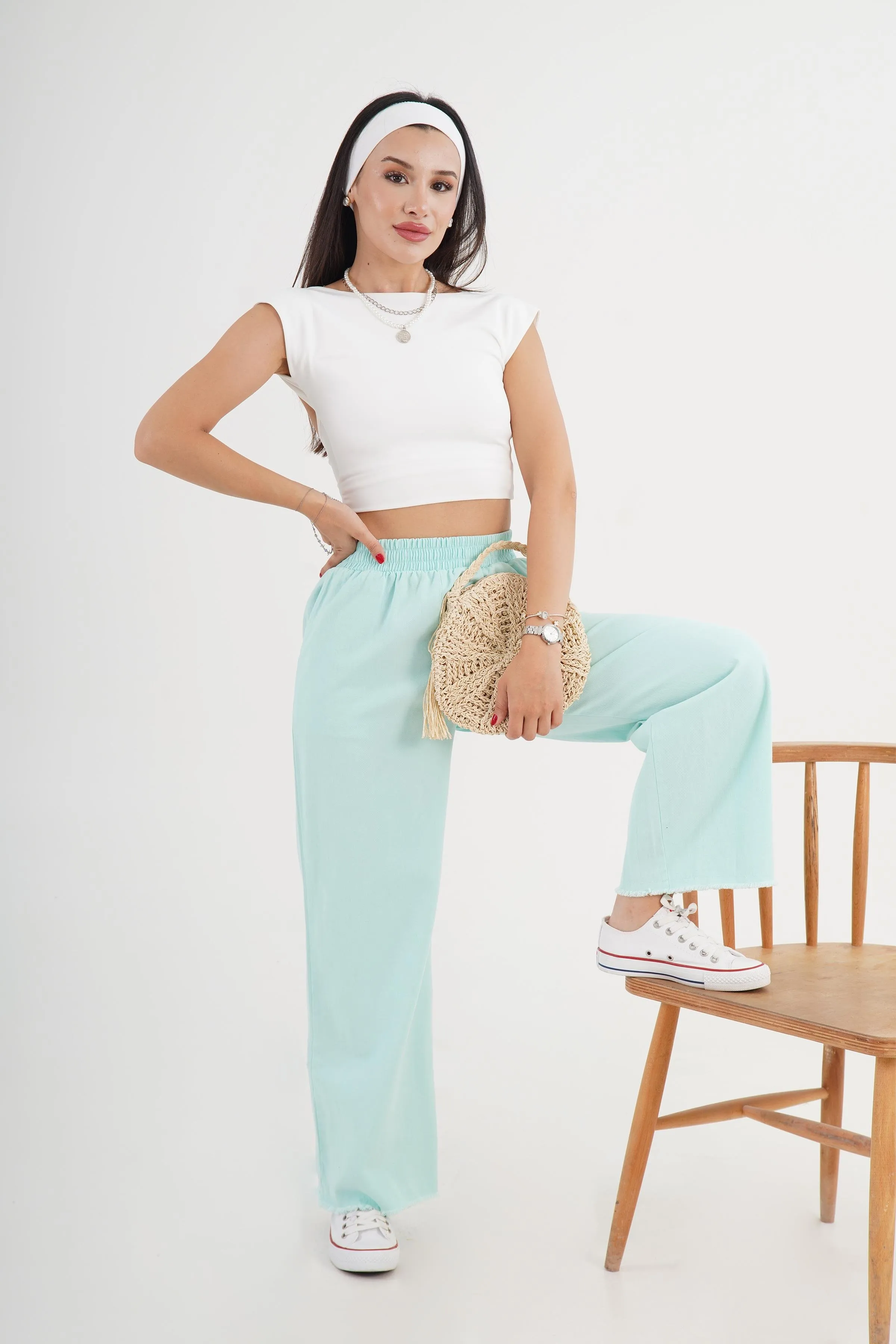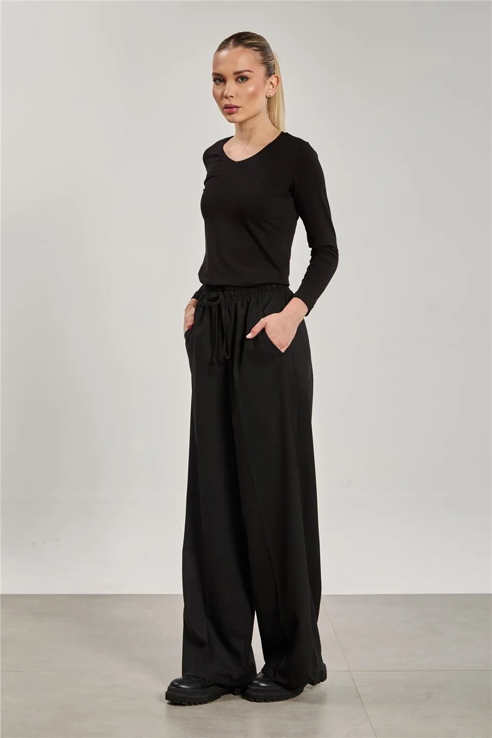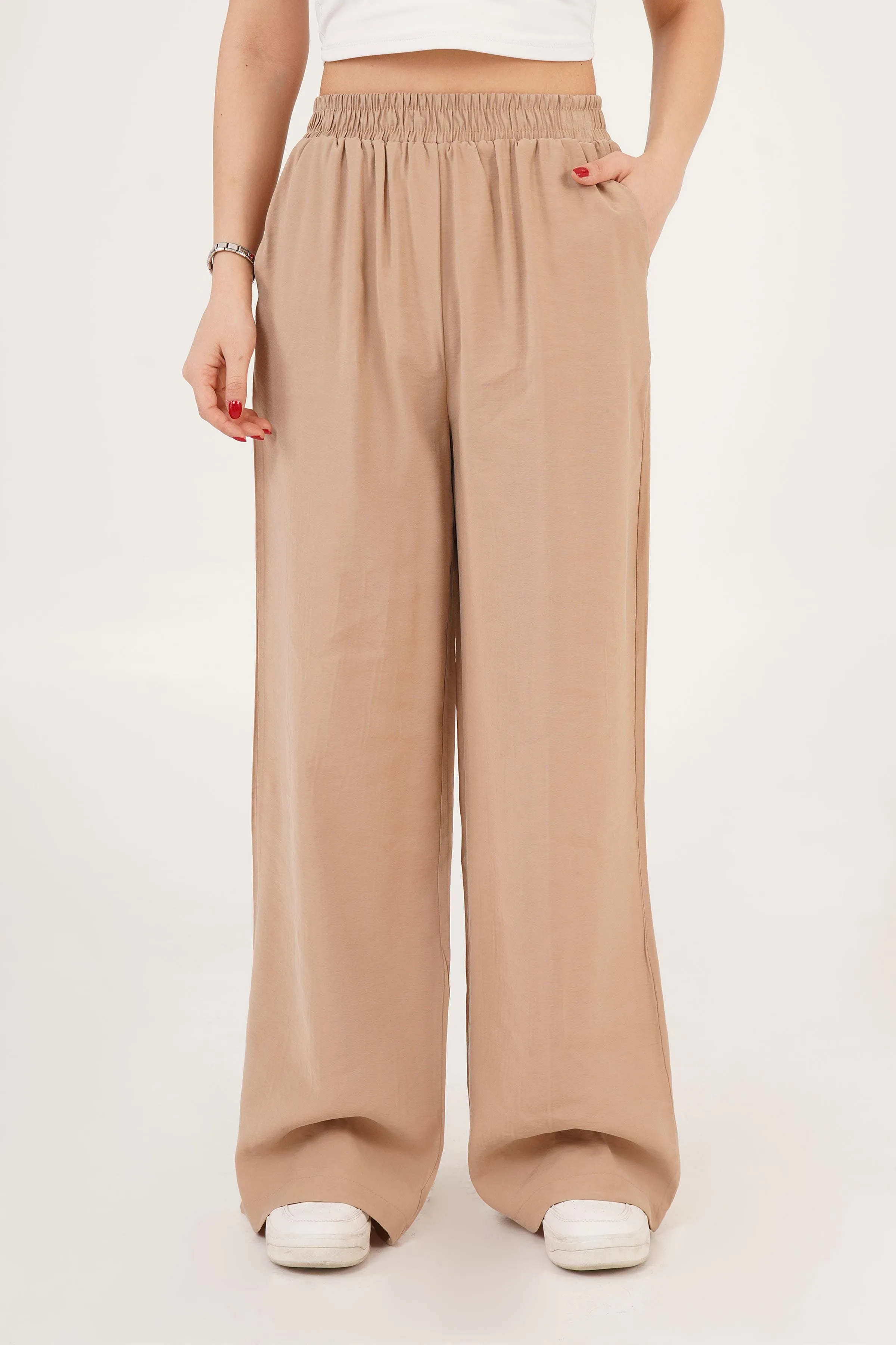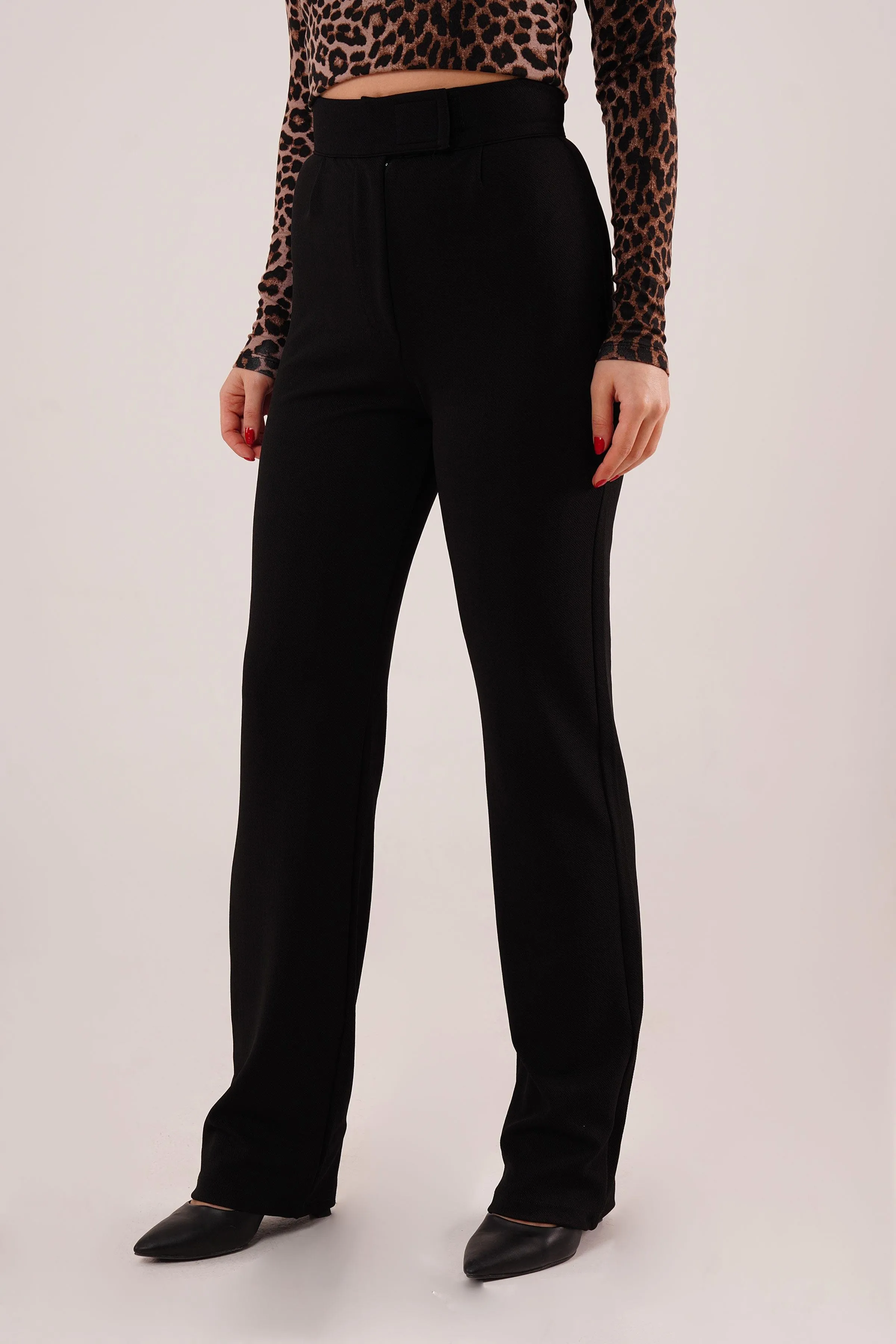 بنطلون نسائي بخصر مرتفع مع أزرار مزدوجة من الأمام، مصمم لمظهر أنيق وراقي يصلح للمناسبات الرسمية والكاجوال.