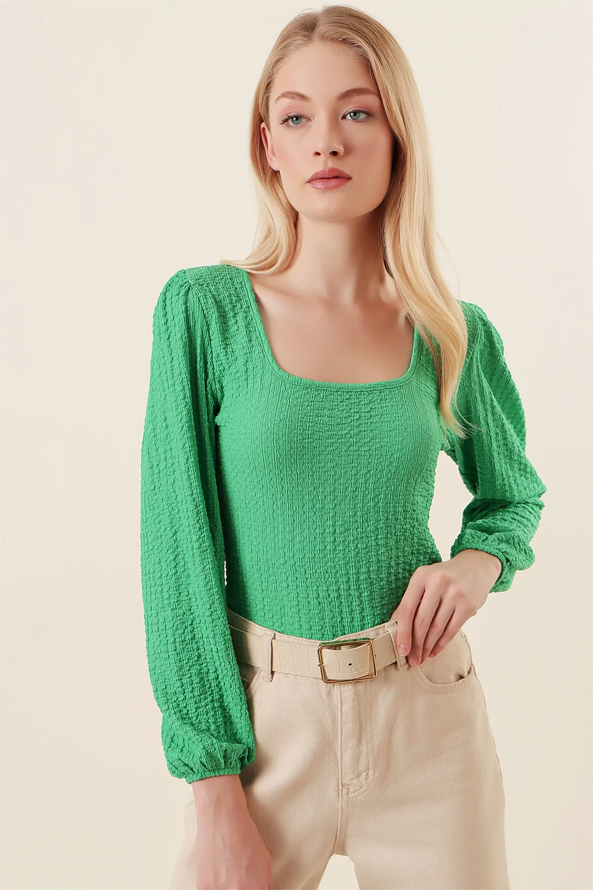 بلوزة نسائية من قماش فيسكوز بياقة دائرية وأكمام راغلان مكشوفة على الكتف، توفر مظهرًا أنيقًا ومريحًا مناسب للنزهات الكاجوال أو شبه الرسمية.