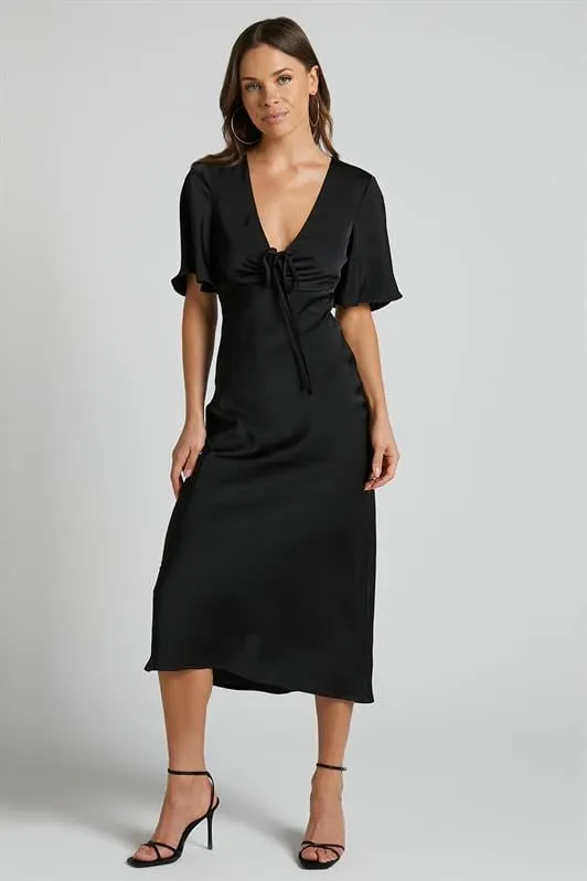 فستان ماكسي منقوش بأكمام طويلة وياقة على شكل V وخصر مطاطي لمظهر أنيق ومريح، مثالي للاستخدام اليومي أو النزهات الكاجوال.