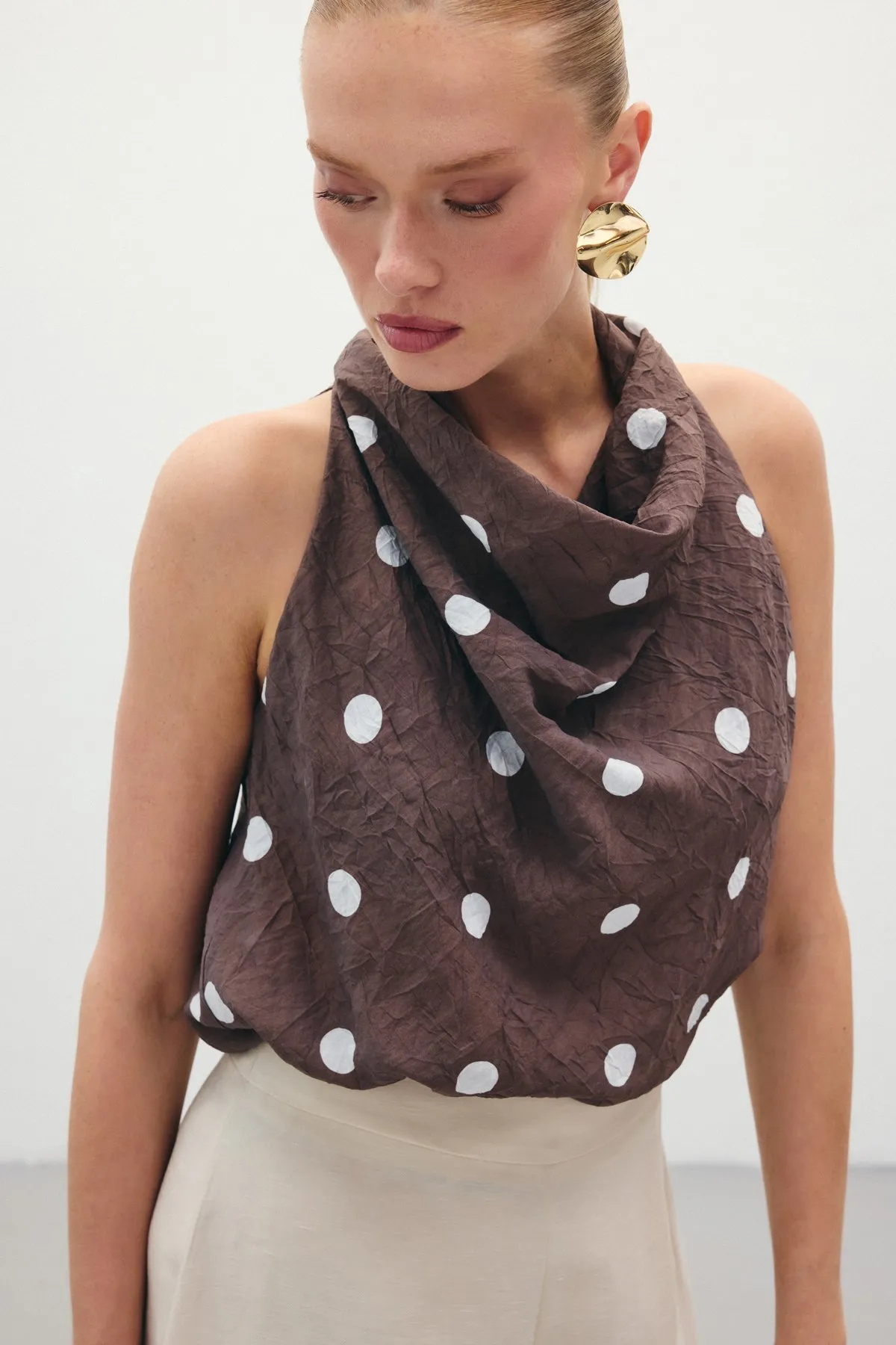 بلوزة محبوكة بدون أكمام بياقة هالتر و نقشة ، مصنوعة من قماش ناعم لمظهر أنيق ومريح مناسب للنزهات الكاجوال أو شبه الرسمية.