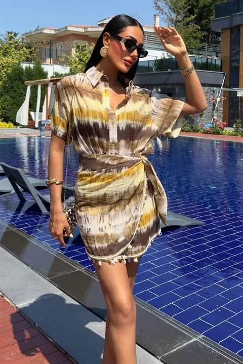 طقم تنورة ميدي محبوكة بأكمام طويلة و ياقة على شكل حرف V للنساء - Beyond Store