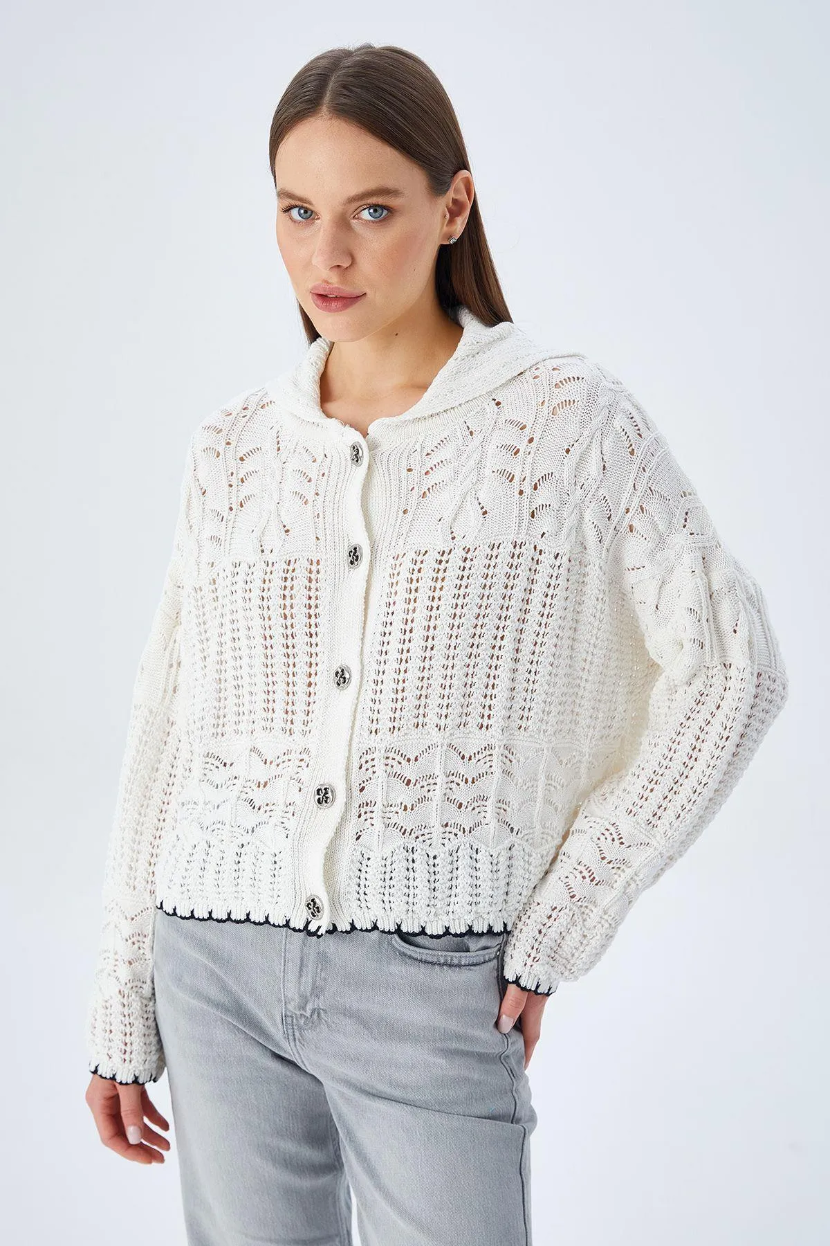 كارديغان تريكو نسائي بياقة دائرية بأزرار - Beyond Store