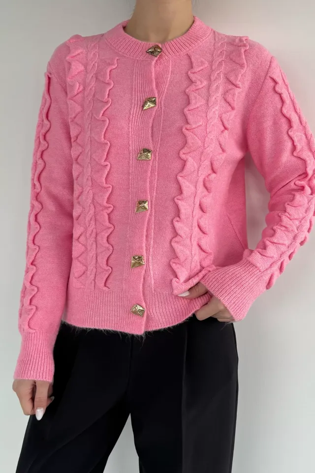 كارديغان تريكو واسع مطرّز بقلوب وياقة V عميقة لإطلالة كيوت ومريحة تناسب أجواء الشتاء.