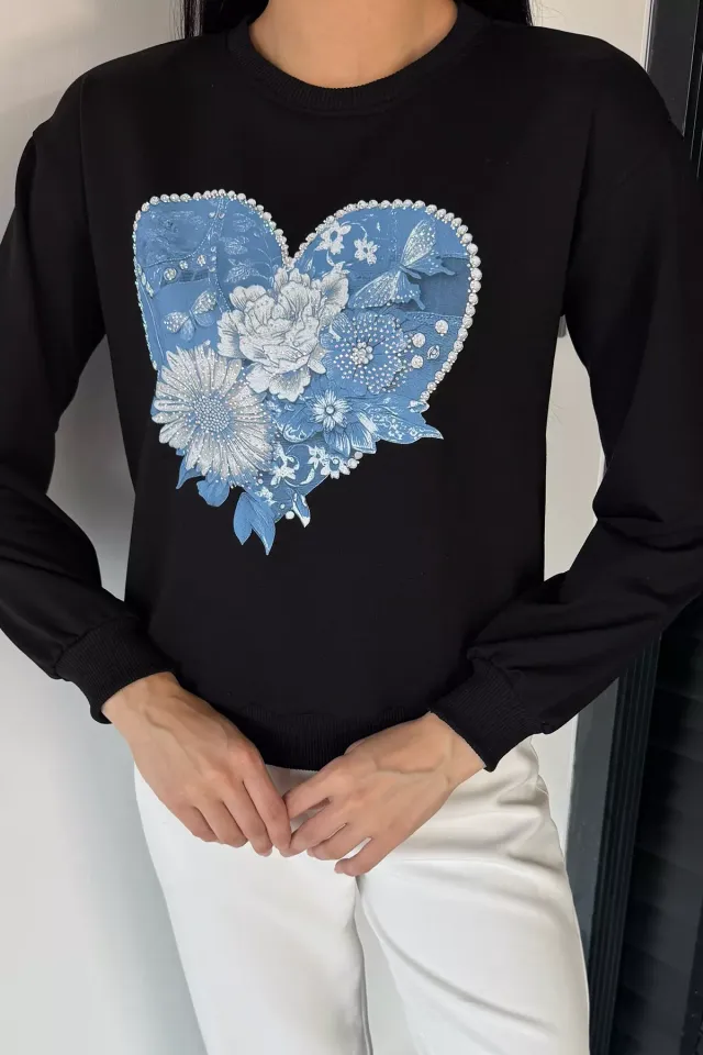 سويت شيرت نسائي مطبوع بياقة دائرية
