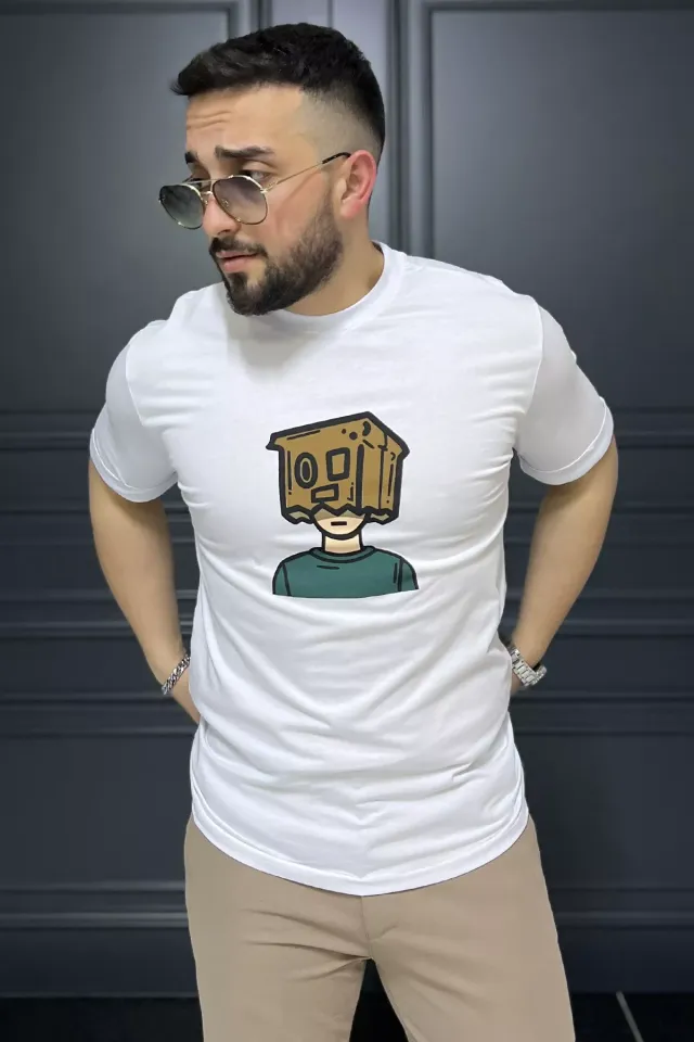 بلوزة رجالية مطبوعة بياقة دائرية و أكمام طويلة