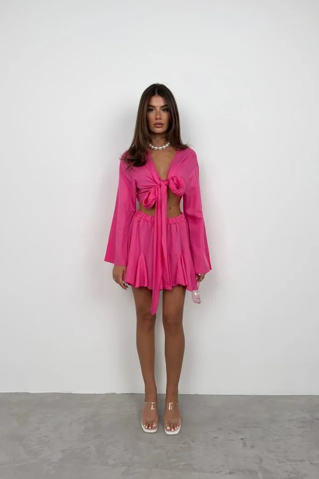 توب بديكون محبوك بقصة محددة بكم طويل وياقة دائرية مزين بربطة أكمام لإطلالة خريفية شتوية