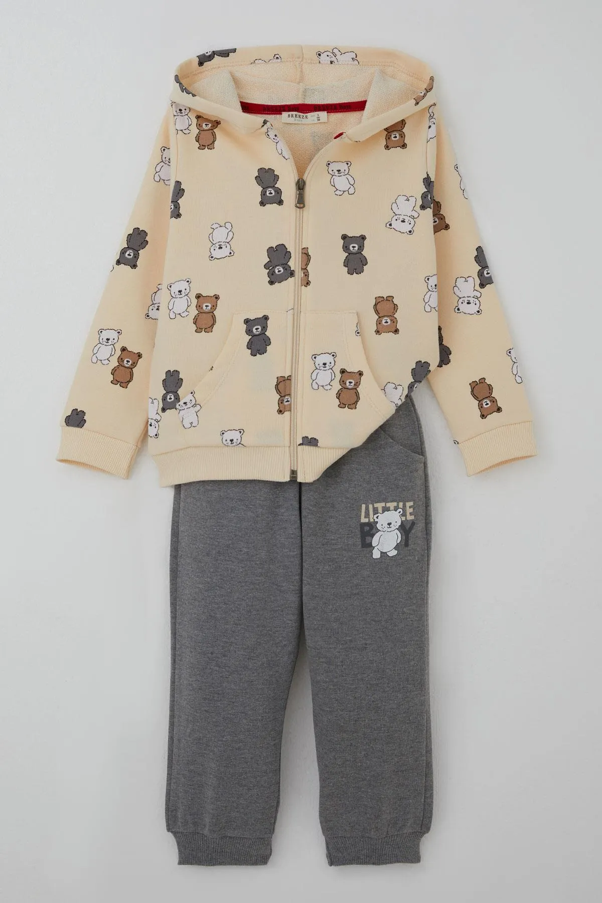 بدلة رياضية مطبوعة للأولاد بأكمام طويلة وجيب كنغر عملي. ناعمة ومريحة وأنيقة، مثالية للارتداء اليومي والنشاطات.