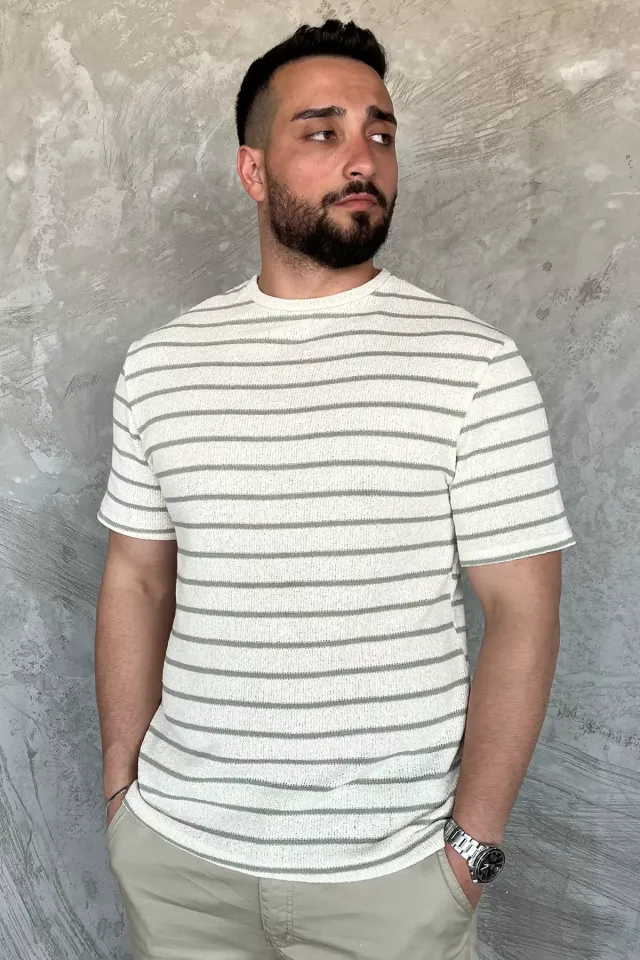 تيشيرت بولو رجالي مخطط بأزرار أمامية. نسيج قطني ناعم وإيلاستان يوفر الراحة والمرونة، مثالي لإطلالات أنيقة وغير رسمية.
