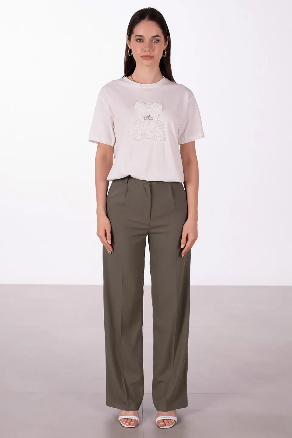 بنطلون مطبوع بخصر مرتفع وتفاصيل جيوب