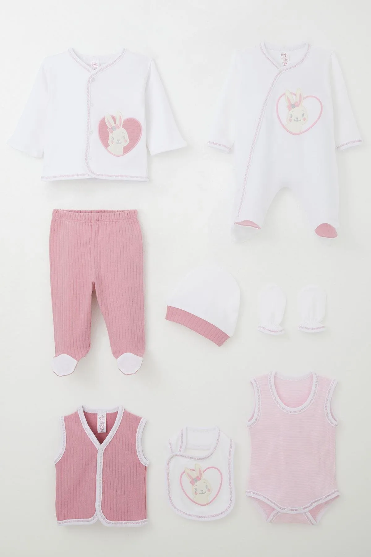 طقم بنات حديثي الولادة مكون من 8 قطع بقماش مضلع ناعم وتطريز بجوّ الطائر اللطيف، مثالي للخروج من المستشفى وراحة الطفل طوال اليوم.