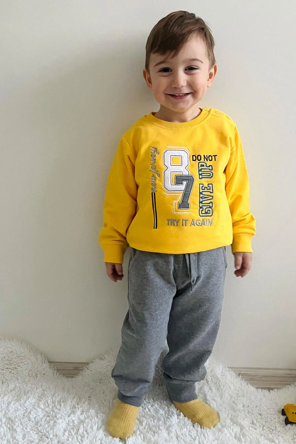 طقم من قطعتين تيشيرت مطبوع بأكمام طويلة و ياقة دائرية للأولاد - Beyond Store