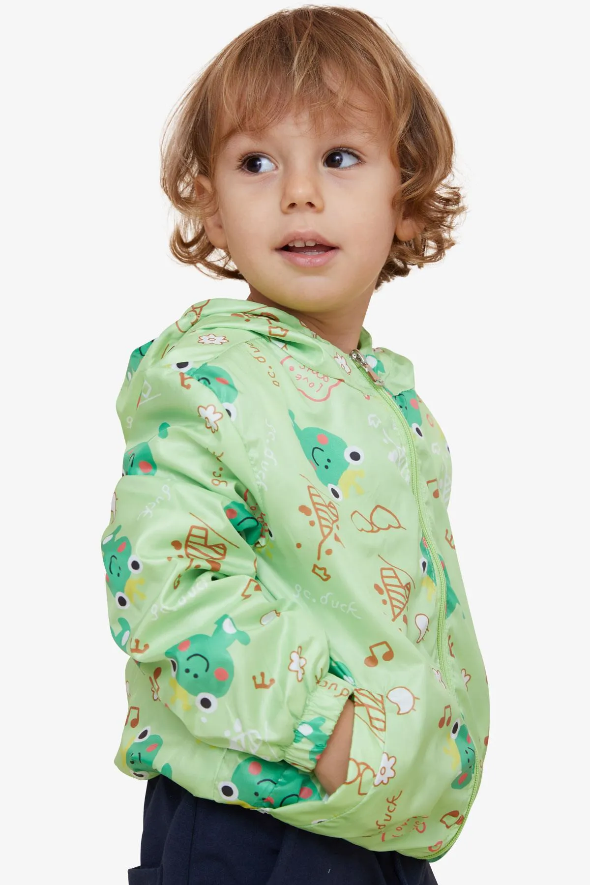 جاكيت ولادي منقوش بأكمام طويلة وسحاب أمامي، دافئ وأنيق، مثالي لأيام البرد.