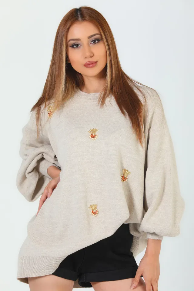 سويت شيرت اوفر سايز بسحاب واكمام بفتحات للابهام للنساء