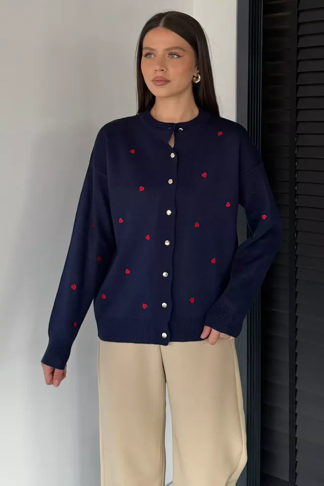 كارديغان نسائي محبوك من قماش بوكليه مع تفصيلة أزرار ذهبية - Beyond Store