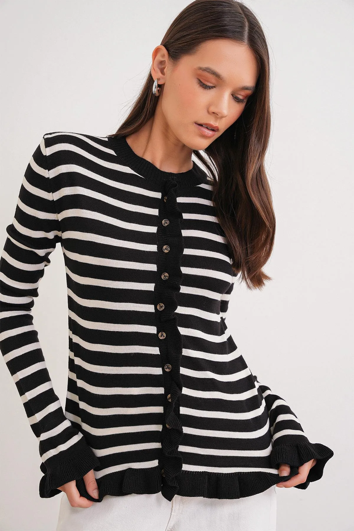 كارديغان نسائي محبوك من قماش بوكليه مع تفصيلة أزرار ذهبية