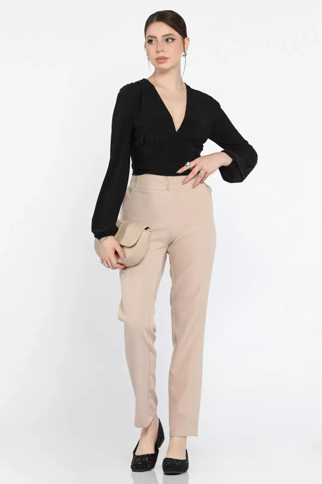 بنطلون سكوبا مودال جوجر بخصر عالي مع طيات وحافة مطوية - Beyond Store