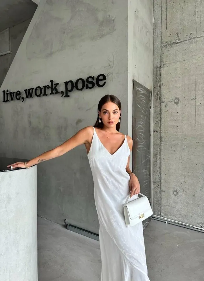 فستان ميدي ضيق مخمل لامع بياقة لف واكمام طويلة مع شق جانبي لاطلالة مسائية فاخرة.