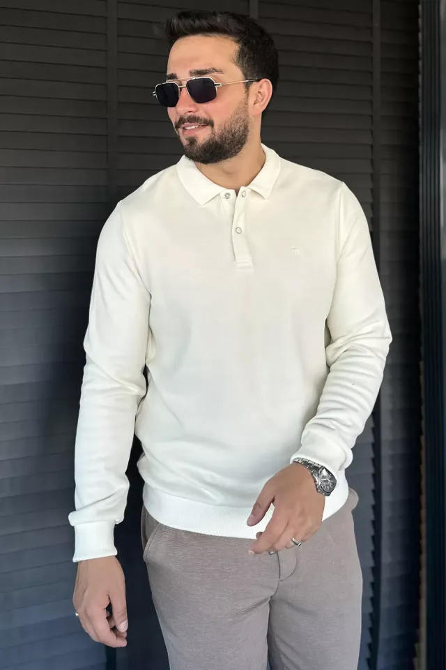 سويت شيرت رجالي سادة بأكمام طويلة وسحاب وياقة قائمة وجيوب - Beyond Store