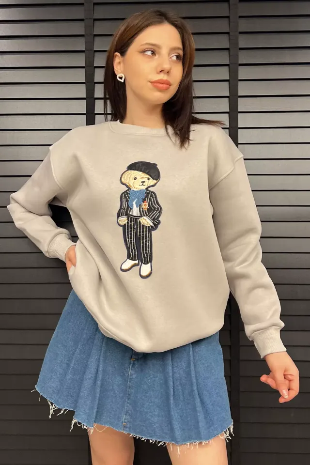 سويت شيرت نسائي أوفر سايز بياقة دائرية وكتف منخفض بتصميم مريح لإطلالات يومية كاجوال شتوية.