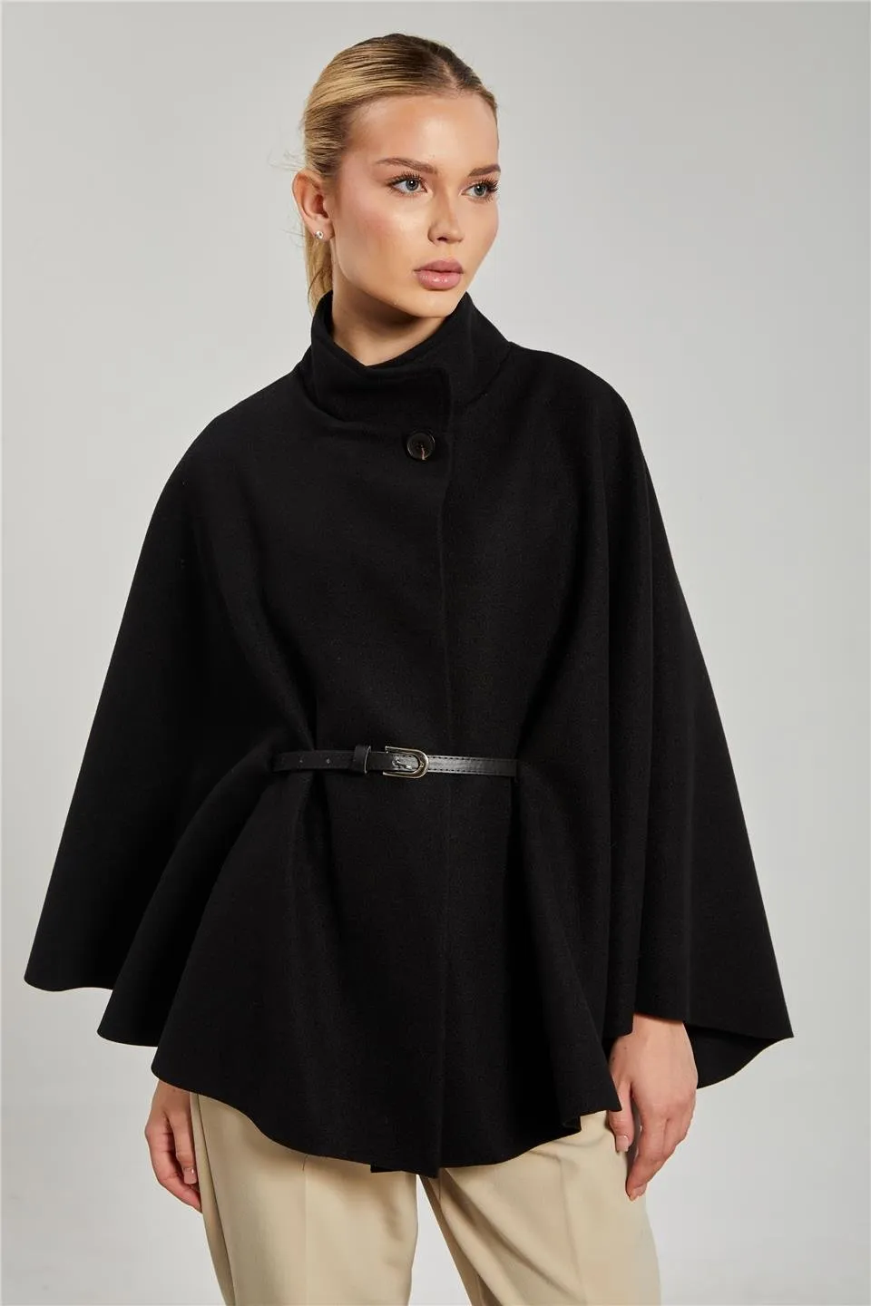 الموديل ترتدي مقاس S – الطول 174 سم، الصدر 82 سم، الخصر 61 سم، الورك 91 سم