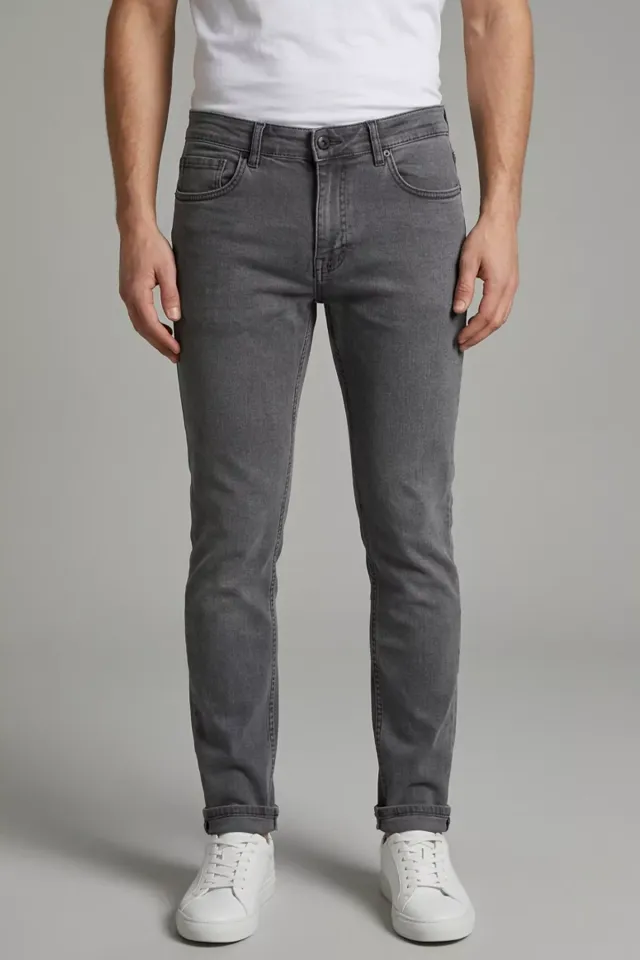بنطلون رجالي ضيق سادة بارتفاع عادي، مصنوع من 96% قطن و4% لايكرا، يوفر تمددًا مريحًا ومظهرًا عصريًا أنيقًا مثاليًا للارتداء اليومي.