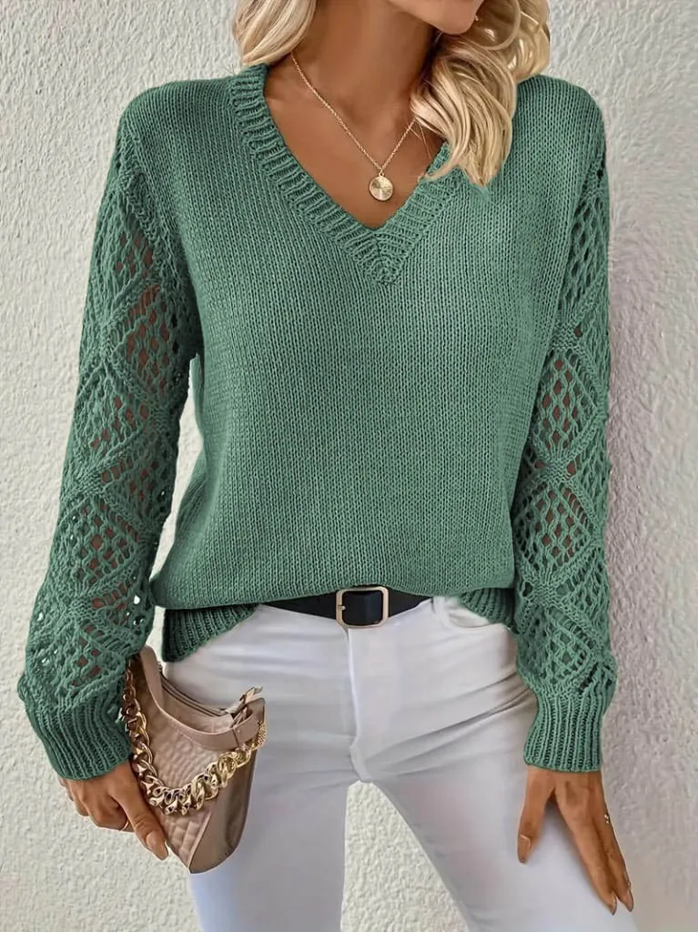 كنزة تريكو نسائية بياقة دائرية وأكمام طويلة بتصميم قصة عادية مثالية لإطلالات كاجوال شتوية مريحة. ٪80 أكريليك، ٪20 بوليستر (قماش تريكو)، الطول 57 سم، الموديل ترتدي مقاس S – الطول 174 سم، الصدر 82 سم، الخصر 61 سم، الورك 91 سم