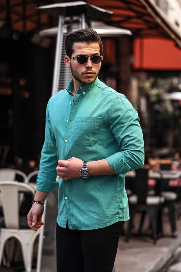 قميص رجالي مريح بأكمام طويلة ورقبة قميص، مصنوع من قماش الجبردين القطني الناعم والمتين بنسبة 100% للاستخدام اليومي والموسمي المريح.