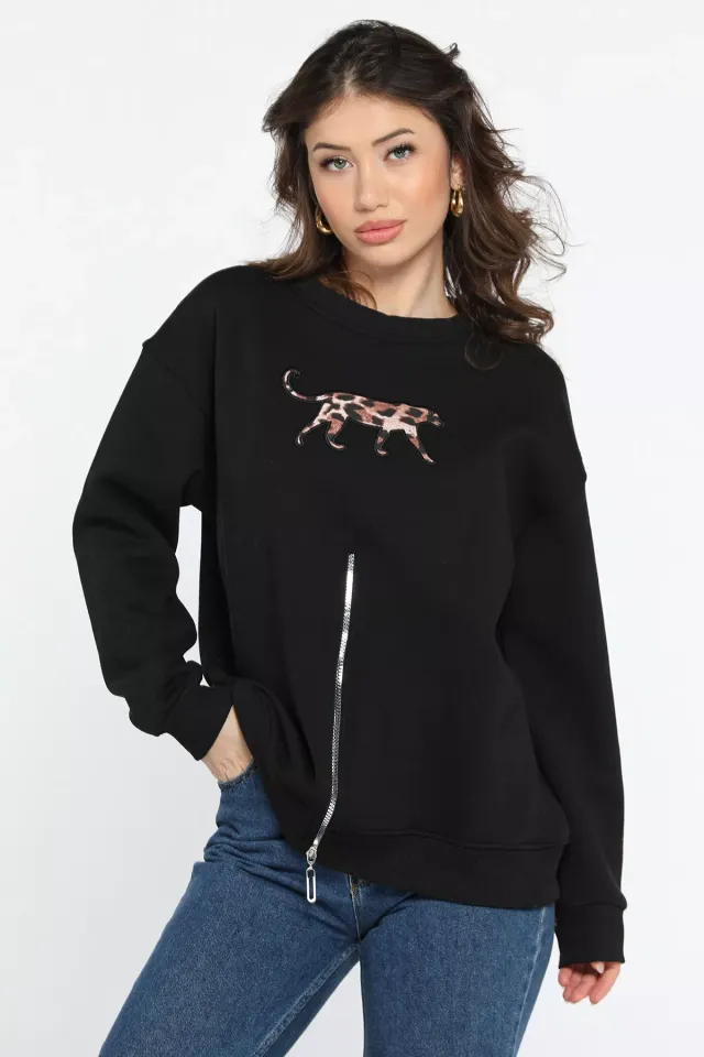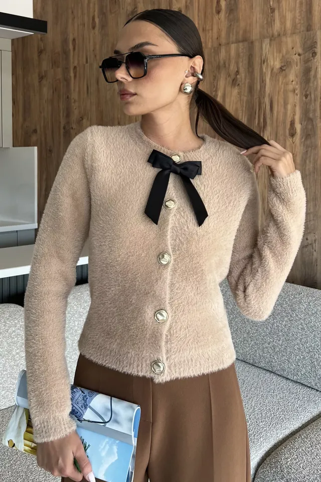 كنزة نسائية تريكو رومانسية بتفاصيل قلوب مطرزة، مع ياقة دائرية وكتف منخفض، بقصة واسعة لإطلالة شتوية أنثوية مريحة.
