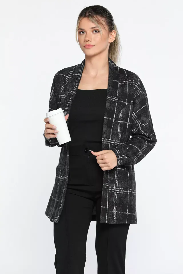 الموديل ترتدي مقاس M – الطول 172 سم، الصدر 83 سم، الخصر 70 سم، الورك 91 سم