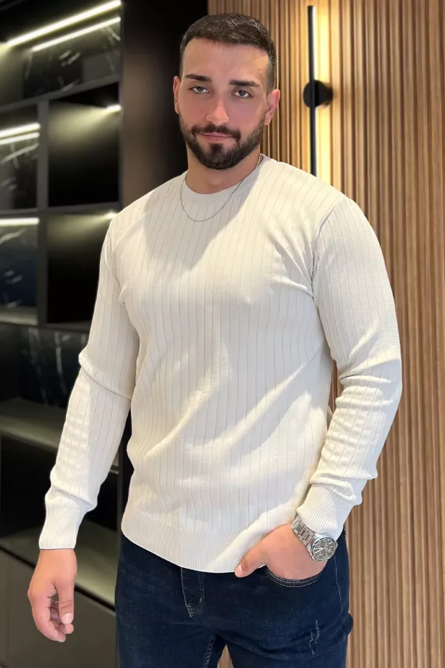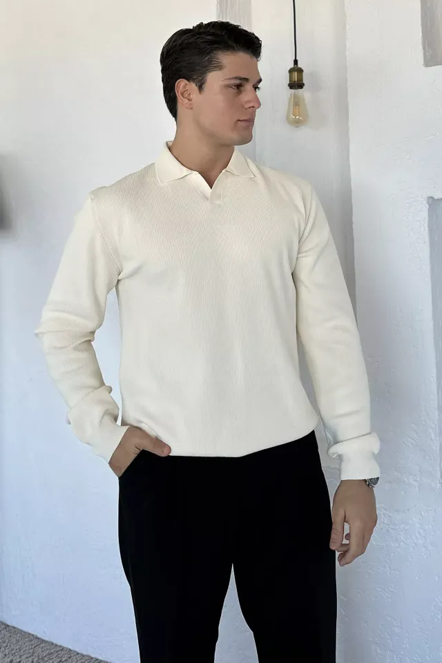 سترة رجالية بأكمام طويلة وياقة عالية كاجوال محبوكة مضلعة بسحاب سادة - Beyond Store