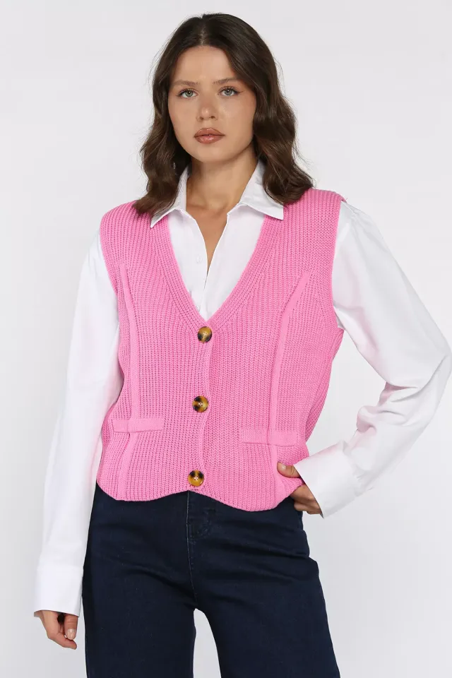 فيست تريكو نسائي مزين بتفاصيل دانتيل ناعمة بقصة أنيقة وأزرار أمامية لإطلالة يومية أو تنسيقات خاصة.