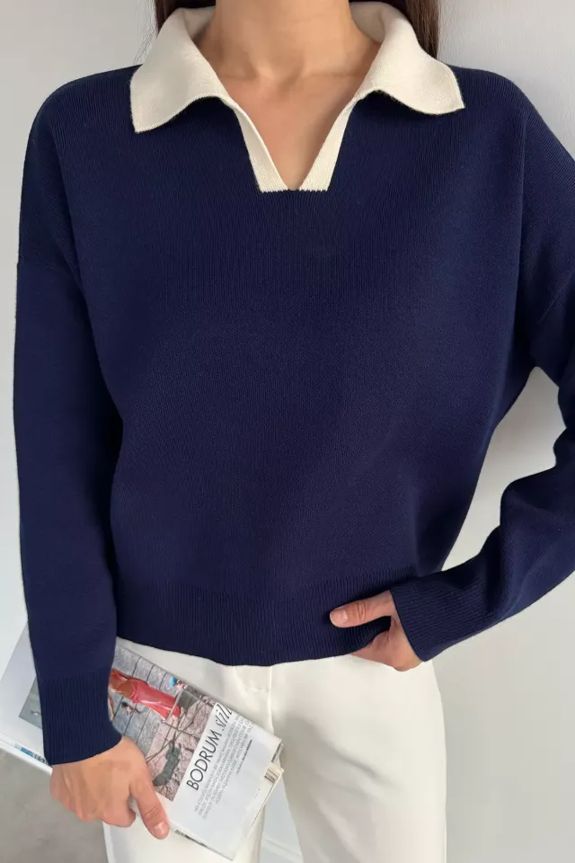 بلوزة تريكو بياقة V وأكمام طويلة للنساء - Beyond Store