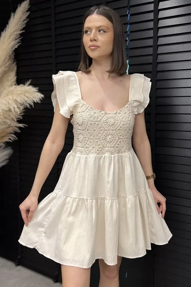 الموديل ترتدي مقاس M/38 – الطول 165 سم، الوزن 55 كغ، الصدر 90 سم، الخصر 72 سم، الورك 100 سم
