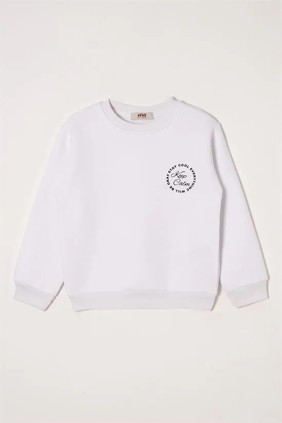 سويت شيرت للبنات بتصميم أنيق بطبعة بارزة وياقة دائرية، مصنوع من قماش ناعم ومريح يسمح بالتهوية لراحة مثالية طوال اليوم.