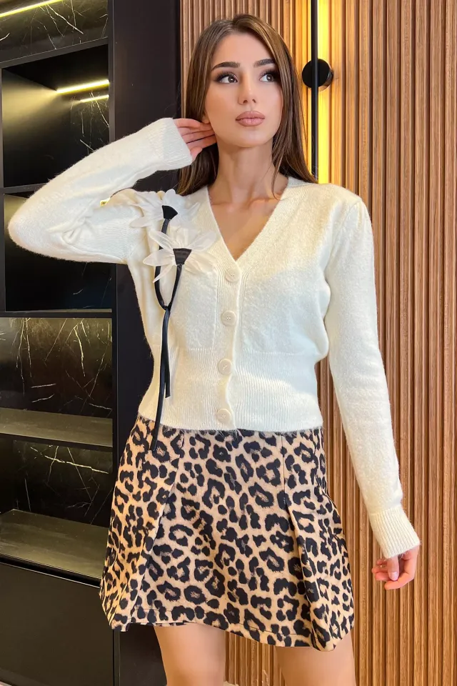 كارديغان تريكو أنيق بياقة V وتفصيل ربطة جانبية لإطلالات شتوية يومية أنيقة. ٪100 قماش تريكو (نسيج ناعم). غير مبطن بتصميم دافئ ومريح بأسلوب لف عصري.